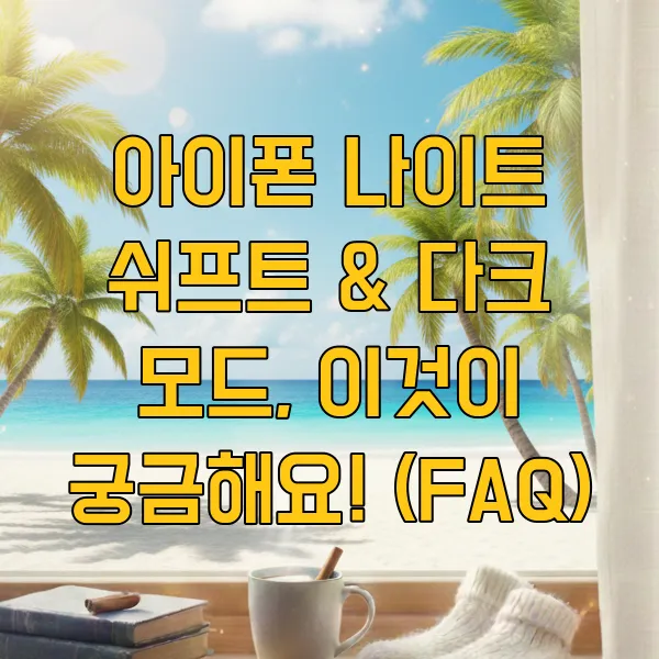 아이폰의 나이트 쉬프트와 다크 모드, 이제 어떤 기능인지 확실히 아셨죠? 이 두 가지 기능을 잘 활용하시면 밤늦게 스마트폰을 사용하더라도 눈의 피로를 줄이고 숙면을 취하는 데 큰 도움을 받을 수 있을 거예요. 특히 2025년, 우리에게 더욱 스마트한 기기들이 많아지는 만큼, 이러한 편리한 기능들을 적극적으로 활용해서 눈 건강까지 챙기는 지혜가 필요하답니다! 혹시 설정이 어렵거나 궁금한 점이 있다면 언제든 다시 물어봐 주세요.